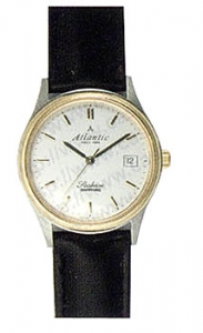 Швейцарские часы Atlantic SeabaseКварцевые часыНержавеющая сталь+позолота 5 микронСапфировое стеклоWR 30ЖенскиеКорпус из нержавеющей стали с частичной позолотой, механизм ETA F03.111, часы, минуты, секунды, индикация числа, позолоченные стрелки и метки, кожаный ремешок.